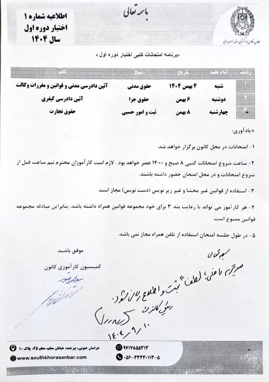 آگهی اختصاصی کانون ها در آزمون کارآموزی وکالت سال ۱۴۰۴
